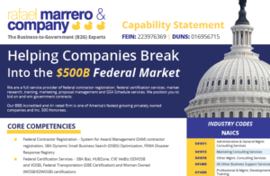 Dr. Rafael Marrero is the founder and CEO of Rafael Marrero & Company. With 30 years of experience in his industry, a graduate of Stanford and Cornell Universities is a leading national expert in federal contracting, small and medium business entrepreneurship, project management, business and federal branding, and strategic communications.